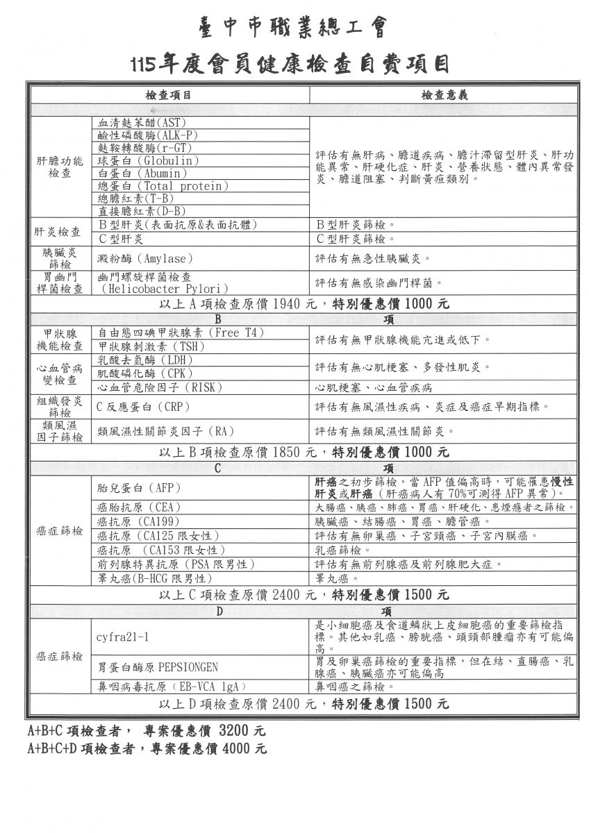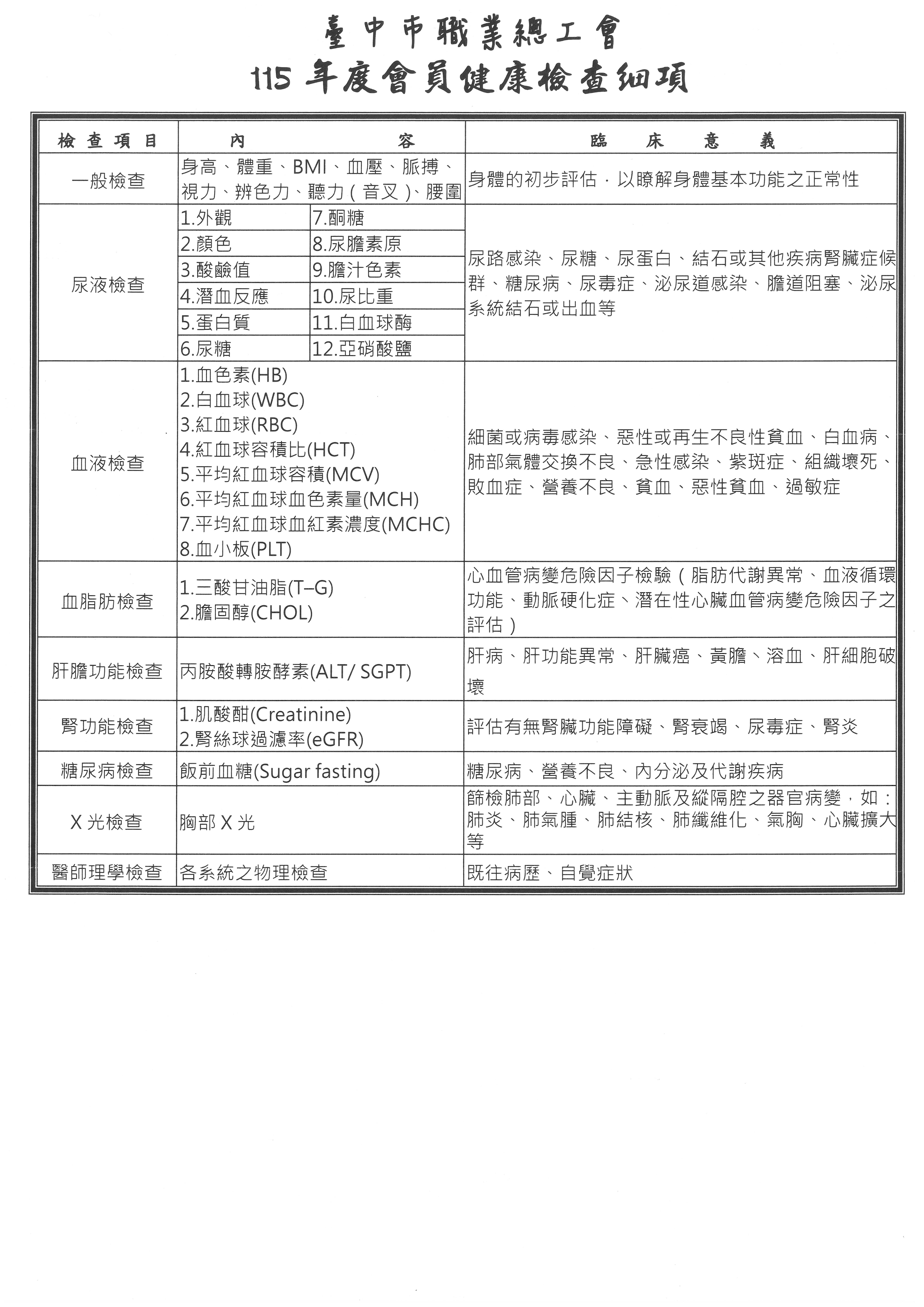 115年會員健康檢查活動(6月份),即日起開始報名!